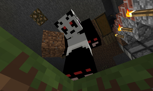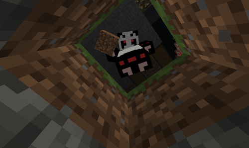 ブロックをひとつ掘り下げて、ぴこたんを下のアングルから撮ってたときのこと・・・